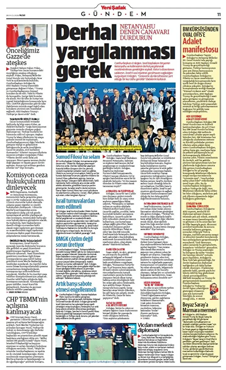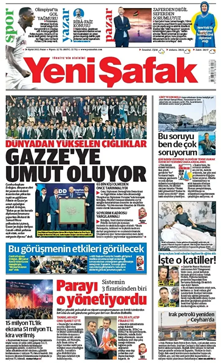 Yeni Şafak Gazetesi’nin 28 Eylül 2025 tarihli birinci sayfasında yer alan manşet ve haberler…