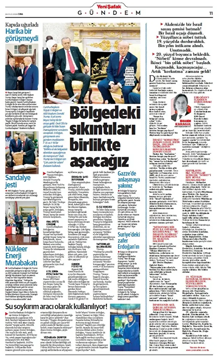 Yeni Şafak Gazetesi’nin 26 Eylül 2025 tarihli birinci sayfasında yer alan manşet ve haberler…